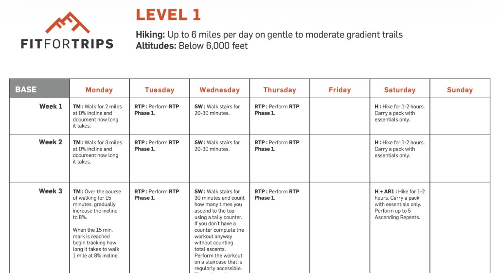 Good question. The only thing I used to be able to think of, other than getting on trail with a pack and starting to hike, was to put on a 25 lb pack and walk stadium stairs for 8 hours a day for three weeks. I decided to search the internet for plans and here’s what I found.