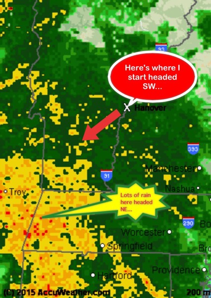 It looks like there’ll be lots of water on the trail.  It will be just like starting in Harpers Ferry with all the rain.  Here’s the current weather radar for Vermont and western Mass.  Yikes!
