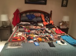 I’m starting to lay out my gear again. I’ll be taking my 20° quilt but otherwise mostly summer gear. My luxury items include: a book, some extra cooking gear and camp shoes.