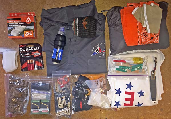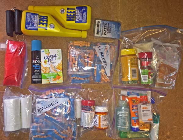 - Meds (Tylenol, Naprosyn, diphenhydramine, 100 day supply of Rx meds packed in individual packets)