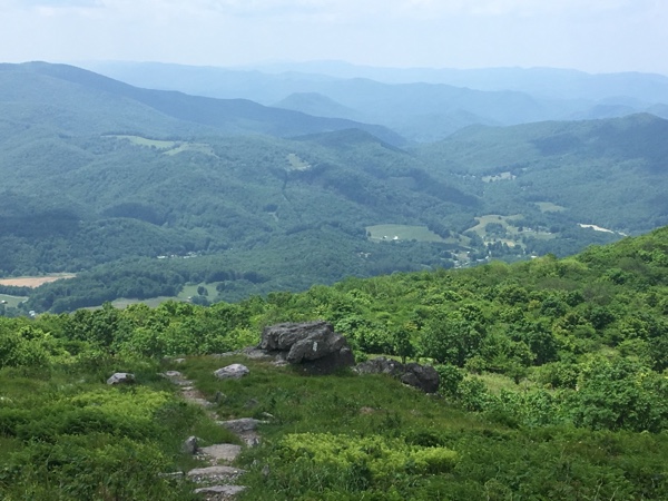 I hiked down off Mt Rogers today, starting at about 5,400 ft and ended up at Lost Mountain Shelter at about 3,400 ft. The vistas continued until after I ate lunch around Buzzards Rock.