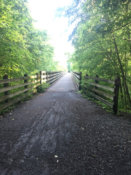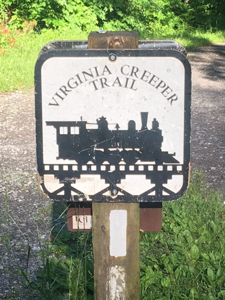 After 2 miles on the AT, it joined the Virginia Creeper Trail, which parallels the AT into Damascus. The VCT is a “rails to trails” path. It’s flat and graded; a welcome change to rock hopping on the AT.