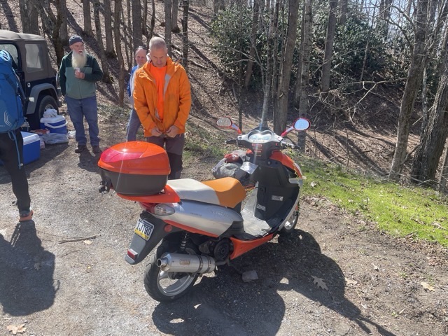 At Iron Mountain Gap, we met Orange Man, who was using a scooter to shuttle to his car. I thought that was a great way to leapfrog if you’re solo.