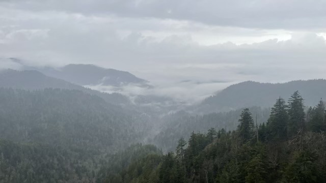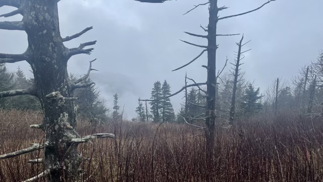 The views continued to be filled with clouds, and the rain continued all the way to the end of the hike. It felt great to be out of the Smokies and have the national park behind me.