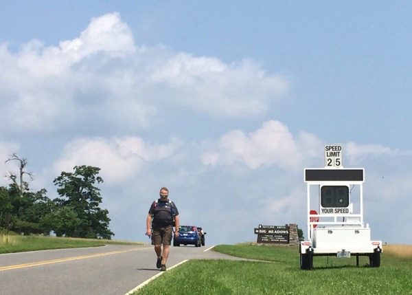 I climbed 3 mountains today: Mary’s Rock (3,347′), The Pinacle (3,601′), and Stony Man (4,011′). Perhaps that’s what slowed me down. Here’s the view from Stony Man.